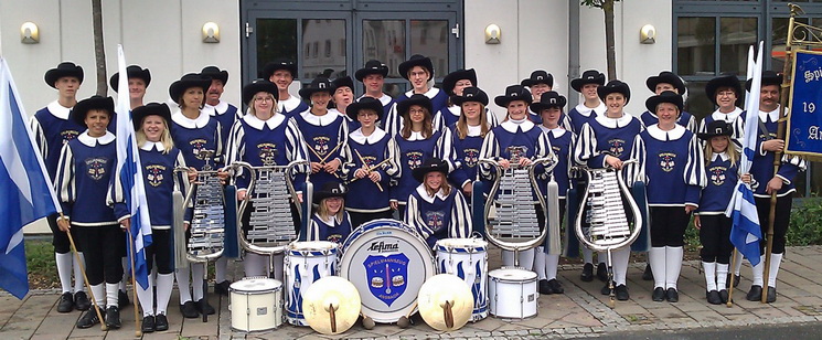 Das Foto zeigt den Spielmannszug Ansbach (2013), der mit vielfältigem Programm aufwartet. So führen auch zahlreiche andere Züge die Tradition der Schützenvereine und Spielleute fort, bereichern Feste, Umzüge und Aufmärsche.