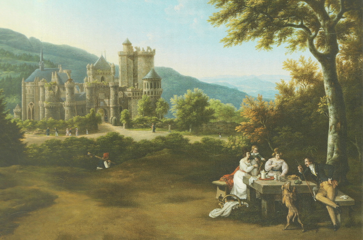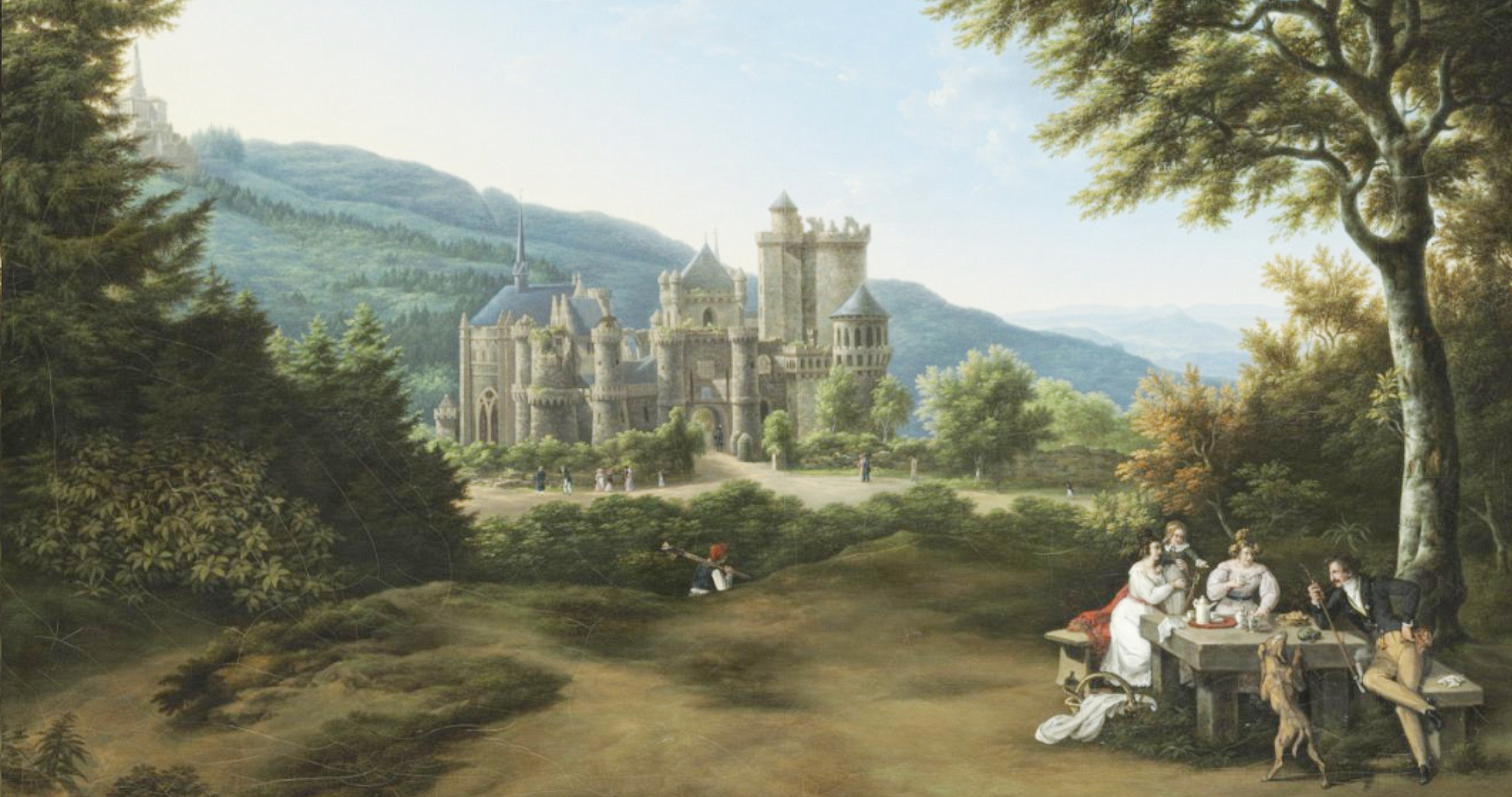Kunstgriff des Malers - Anornung von Gruppe, Löwenburg, Okrogon/Herkules in einer Diagonale re unten nach links oben